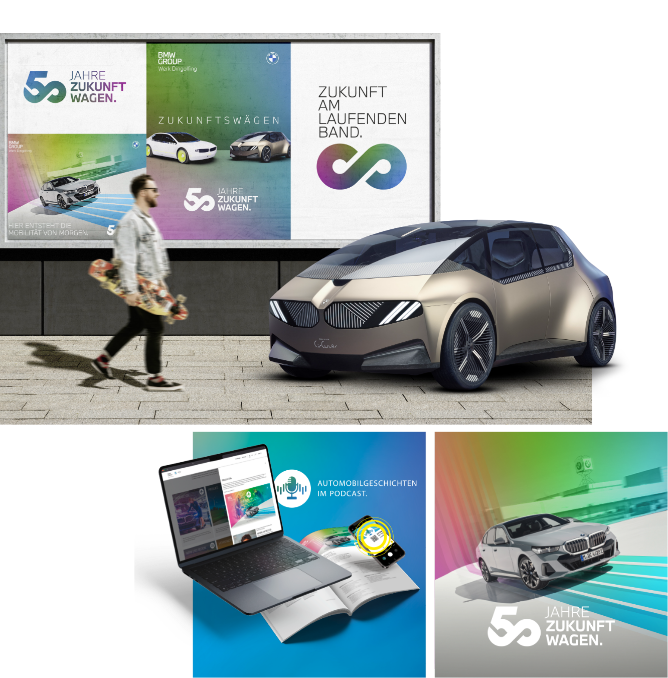 Die preisgekrönte Kampagne "50 JAHRE ZUKUNFT WAGEN" zelebriert die vielen Dimensionen des größten Arbeitgebers Niederbayerns hinsichtlich Produktion und Produkte sowie Verantwortung für