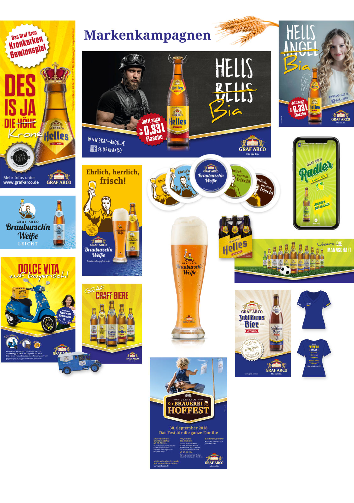 Mia san Bia. Drei Worte, die bayerische Identität, Bodenständigkeit und Traditionsbewusstsein verkörpern. Werte, die die Gräfliche Brauerei Arco-Valley mit der 2013 geschaffenen Produktlinie repräsentiert. Die Markteinführung wurde von einem neuen Webauftritt sowie einer Cross-Media-Kampagne begleitet. Es folgten weitere Markendesigns (u.a. zur Braubursch’n Weiße und Craft-Bieren) und öffentlichkeitswirksame Maßnahmen, die GRAF ARCO in den Fokus rücken: Das jährliche Brauerei Hoffest, Parkfest, eine Roadshow und auch eine Fußballaktion während der Rückrunde. Wenn guter Geschmack und die richtige Markenstrategie aufeinandertreffen, dann wird Biergenuss zum Erlebnis.