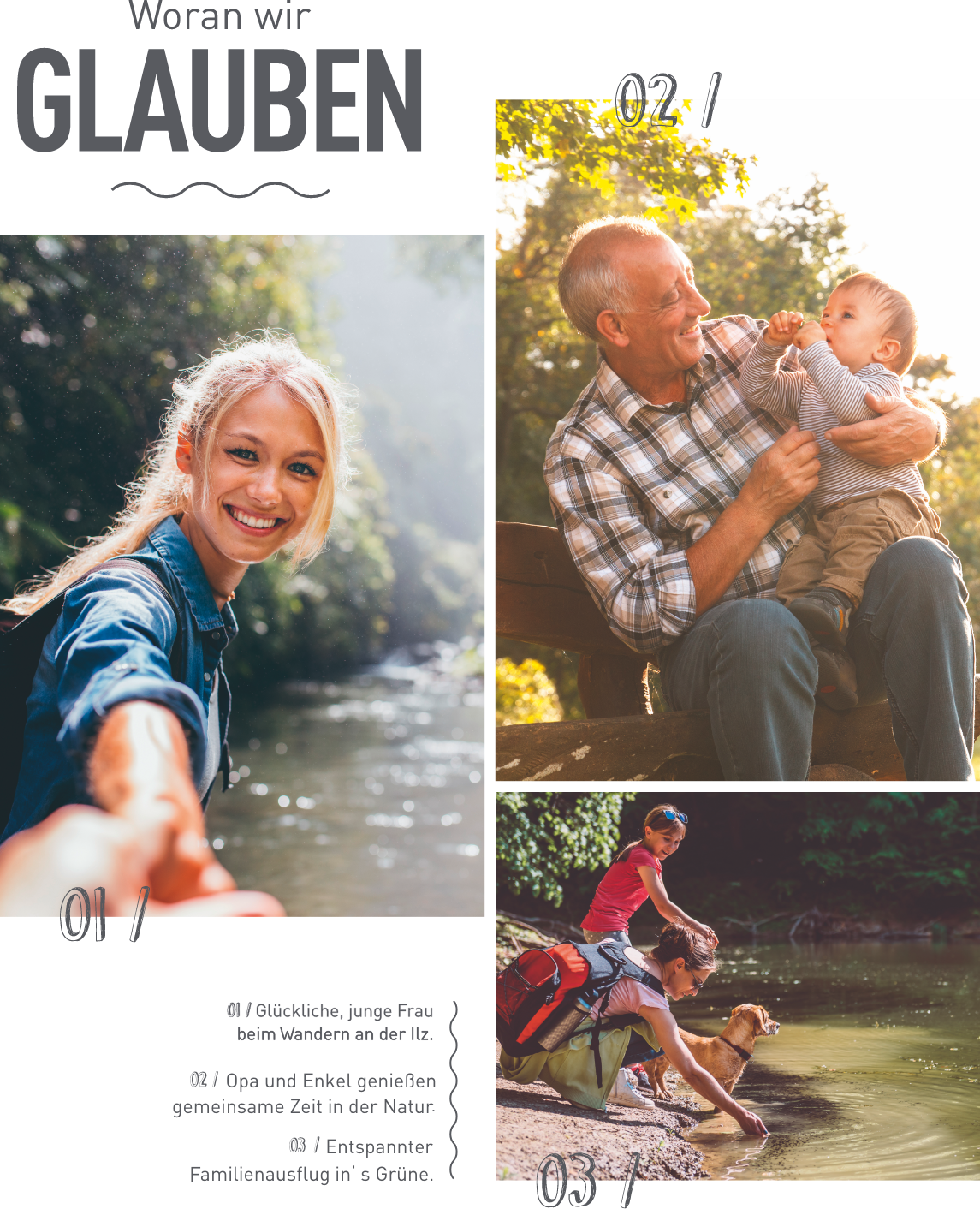 Ein Pilotprojekt, made in Bavaria: das Ilzer Land. Der Vorzeigezusammenschluss der Integrierten Ländlichen Entwicklung (ILE) wurde mit einem neuen, identitätsstiftenden Kommunikationskonzept auf die nächste Ebene gehoben, mit dem Ziel, die Menschen in der Region zu inspirieren und die kommunale Arbeit mit einzubinden. Neben strategischen Leitlinien entwickelten wir auch Leitbild und Kommunikationsinstrumente für die Zukunft des Ilzer Landes. Ein Projekt, das auch künftig viele interessante Dialoge und positive Impulse verspricht!