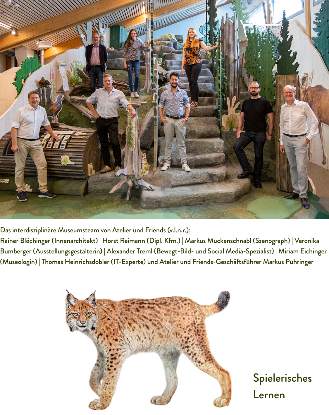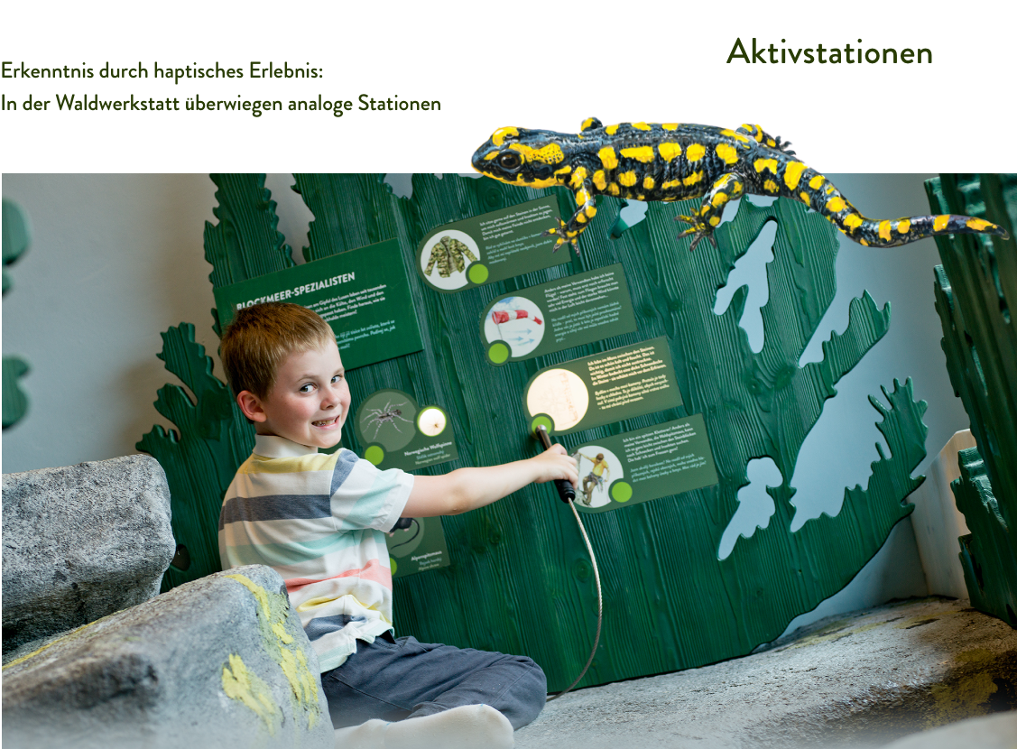 Naturerlebnis und -erkenntnis lautet das zentrale Thema der Waldwerkstatt im Besucherzentrum Hans-Eisenmann-Haus des Nationalpark Bayerischer Wald. Der Erlebnisraum eignet sich sowohl für betreute umweltpädagogische Programme als auch für Einzelbesucher mit Kindern. Hauptattraktion ist eine kindgerechte Kletter-, Spiel- und Lernlandschaft in Form einer raumhohen Inszenierung des Lusen, dritthöchster Berg des Bayerischen Waldes. Analoge Interaktiv-Stationen sprechen alle Sinne an und laden zum Entdecken, Spielen und Forschen ein. Wir freuen uns, mit der Konzeption, Gestaltung und Umsetzung der „Waldwerkstatt“ zu einem neuen Highlight im Angebot des Nationalparks beitragen zu können.