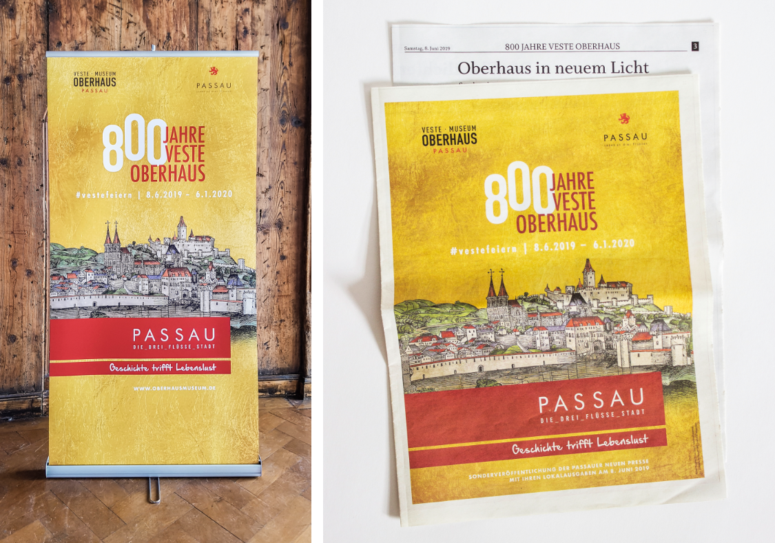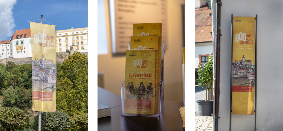 Die Veste Oberhaus beherbergt als Publikumsmagnet für Einheimische und Touristen eine Reihe von attraktiven Einrichtungen. Mit adaptiertem Schriftzug und Leitmotiv werden die 800-Jahrfeier der Veste und alle damit einhergehenden Projekte inklusive deren Kommunikation begleitet. Die Sonderausstellung „800 Jahre Veste Oberhaus“ wurde ebenfalls von uns konzipiert und gestaltet.