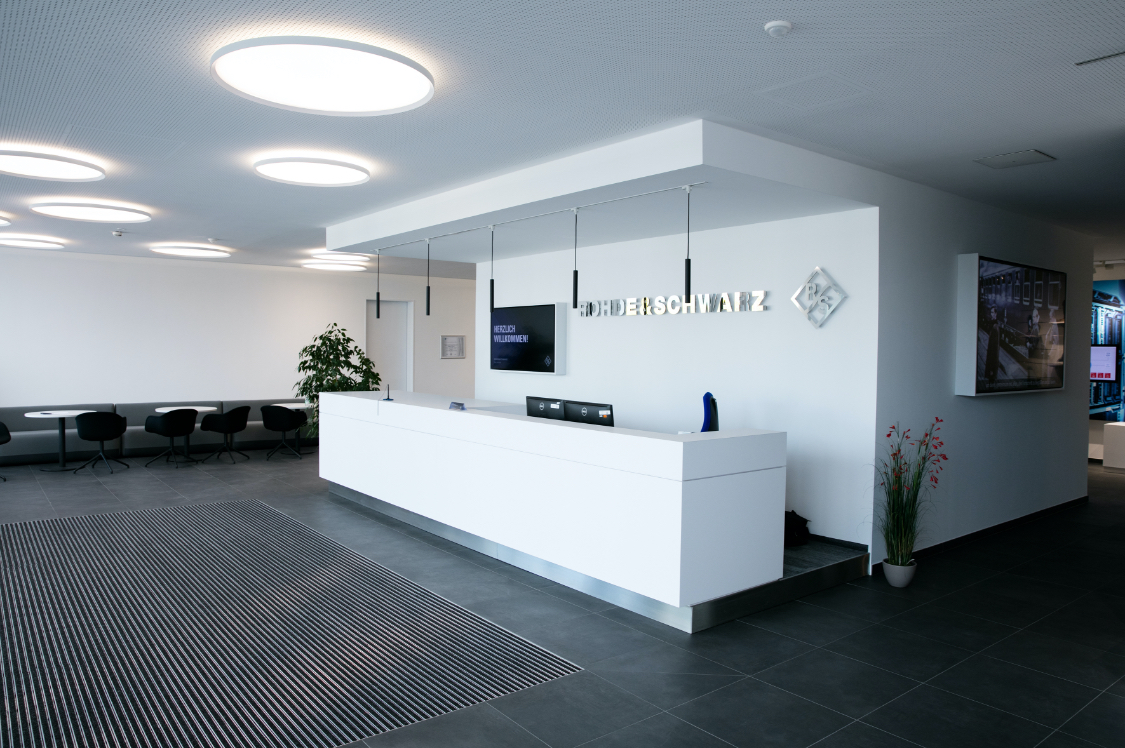 Dass Kommunikation nicht nur in Form klassischer Werbemaßnahmen funktioniert, zeigen wir am Beispiel der architektonischen Leistung für das Werk Teisnach von Rohde & Schwarz. Hier hat zweidimensionales Wunschdenken seinen Ausdruck durch Entwurf, Planung und Baubegleitung neuer Gebäudekomplexe gefunden: Der Eingangs- und Empfangsbereich besticht durch klare und moderne Strukturen, die offene Bürolandschaft lädt mittels Arbeitsinseln zum Austausch ein. Als Highlight sticht der neue Sky-Besprechungsraum hervor: Raumhohe Glaswände ermöglichen einen einmaligen Blick in das Tal von Teisnach und auf den Bayerischen Wald.